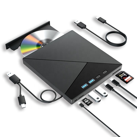 Unidad óptica externa multifuncional 5 en 1 USB3.0, grabadora de reproductor de CD DVD RW con puertos de ranura para tarjeta SD TF, controlador óptico portátil